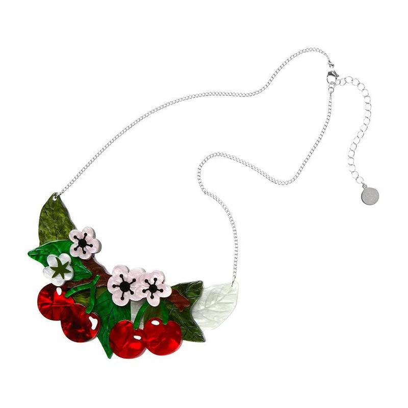 A design that’s just as sweet as can be, this piece from the Botanical Fruit collection has been hand-assembled from a mix of textured resins, with hand-painted detailing. While it makes an impact all on its own as a cherrific statement necklace, for a look that’s a little ‘extra’ we recommend pairing it with the Blossoming Cherries or Black Cherry Bounce brooches, while stocks last.
