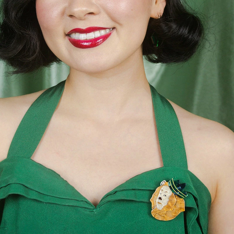 We’re afraid there’s no denying that he’s just a dandy-lion, but a wonder to observe. Textured resin and hand-painted details gives the cowardly lion brooch a depth of character previously only seen on film. Take him with you and wear him if you ever feel like you’re lacking nerve.
