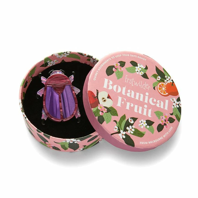 We love fruit, you love fruit, and our Summer Scarab most definitely loves fruit too! Hand-assembled from a mix of textured purple resins and with laser etched detailing, this limited-run Summer Scarab Fig-eater brooch from the Botanical Fruit collection is sure to liven up any outfit.