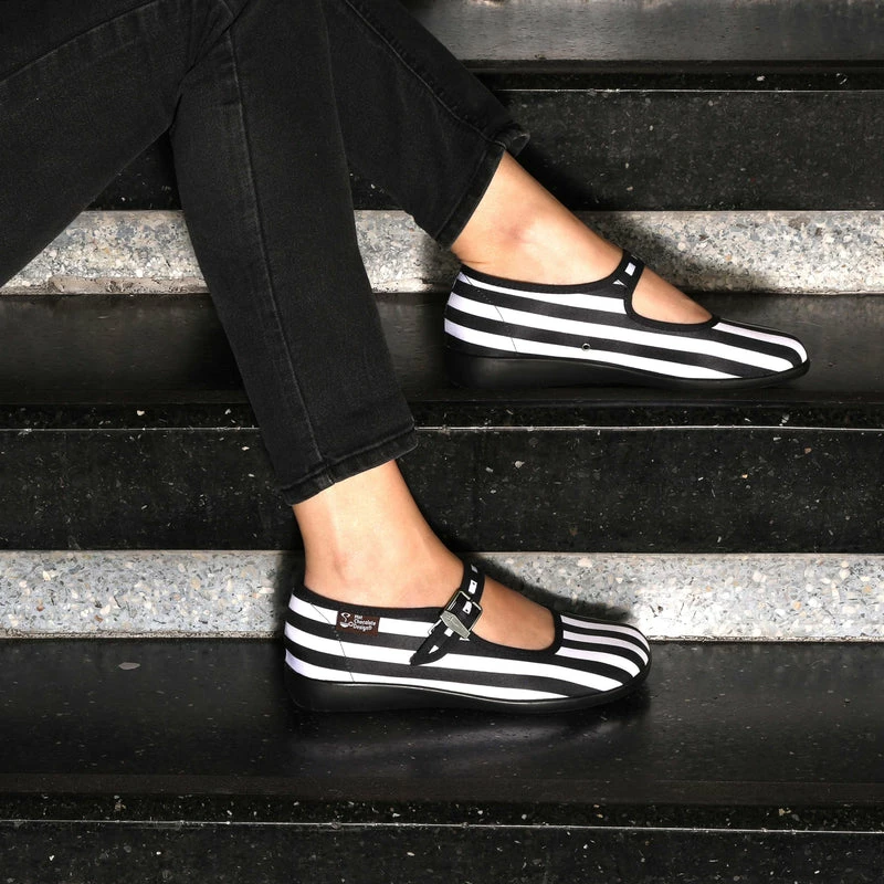 Channel your inner Winona with these Beetlejuice-inspired beauties! Classic black and white stripes will go with EVERYTHING, so get Lydia Deetz on your feetz!