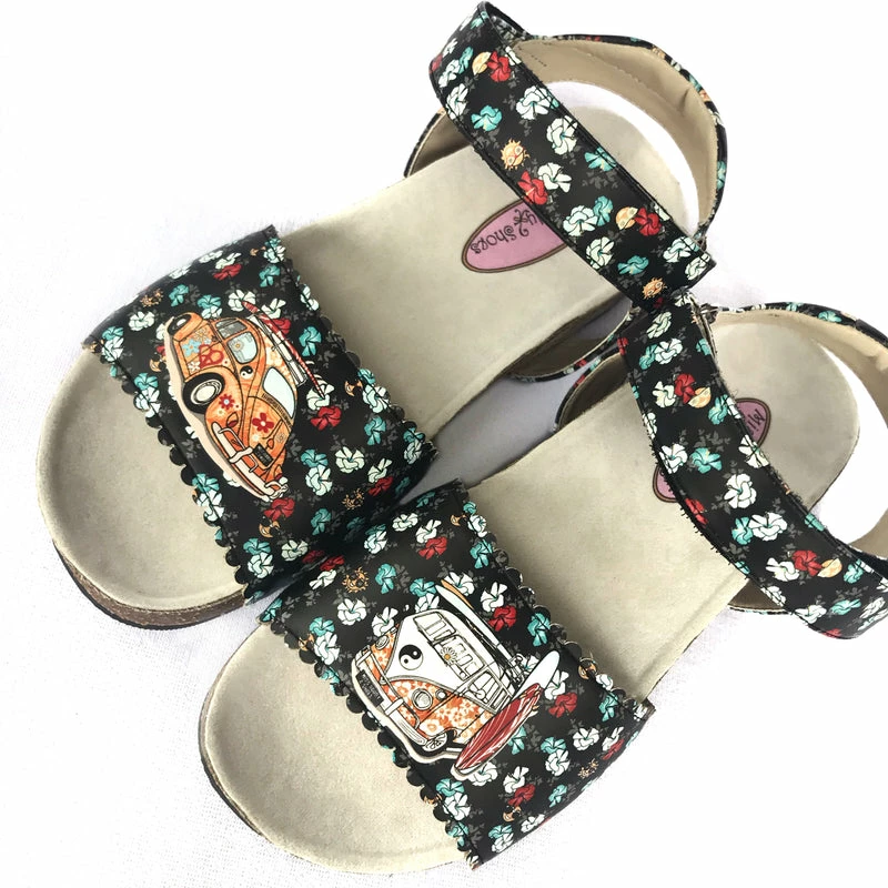 Miss Love Bug sandal was inspired by Queenslands Surfers Paradise summer vibe. Featuring mismatch VW original prints on the sandals which match!
