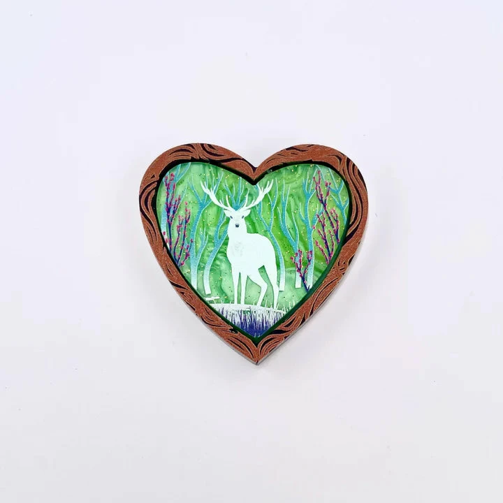 Welcome our mini elven whimsical stag on glitter acrylic forest background.