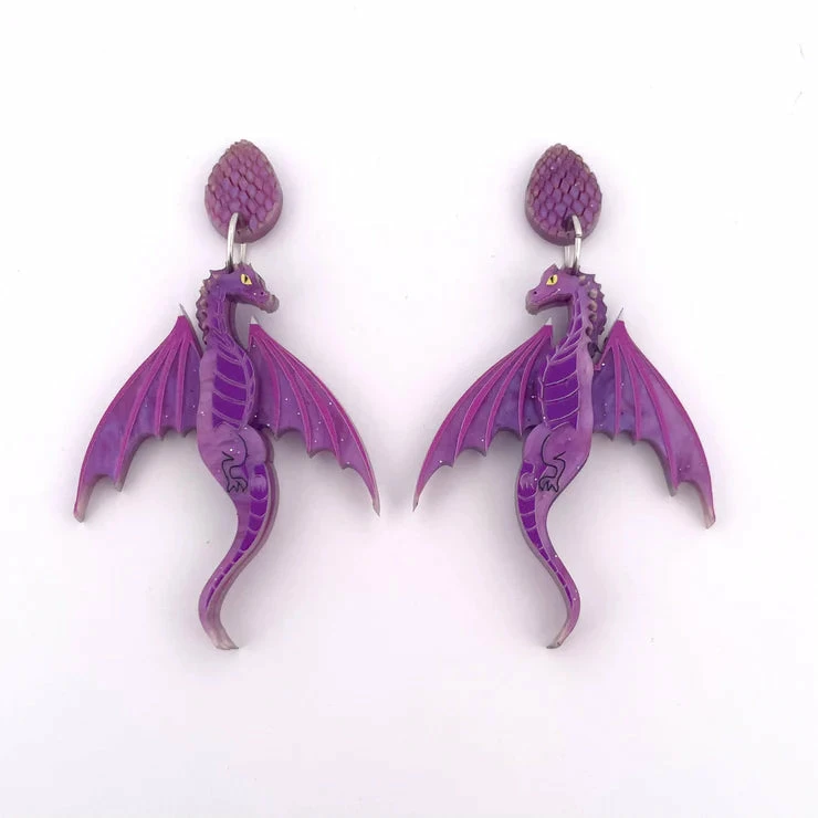 Fly high like Khaleesi wearing our friendly purple dragon earrings!