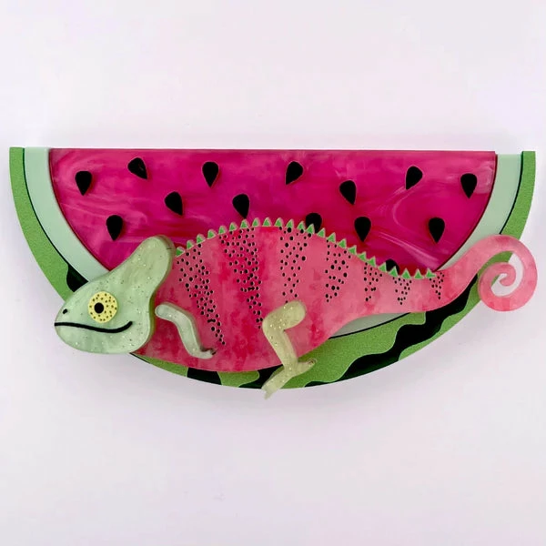 You won’t blend into the background wearing this juicy bright watermelon brooch.